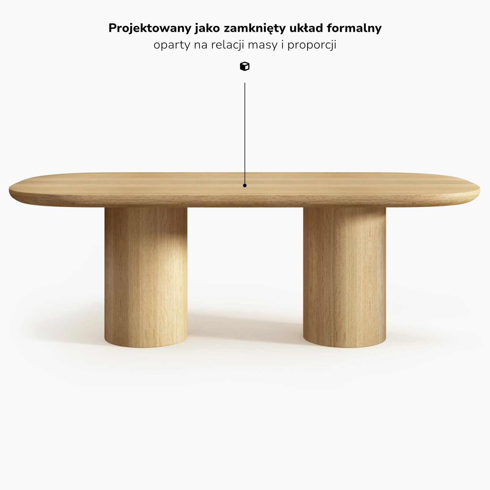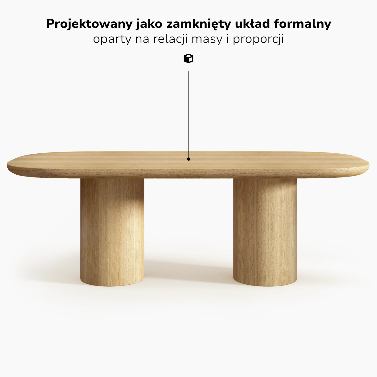 Podstawa została sprowadzona do archetypicznej bryły nośnej, podporządkowanej relacji z blatem, a nie autonomicznej ekspresji.