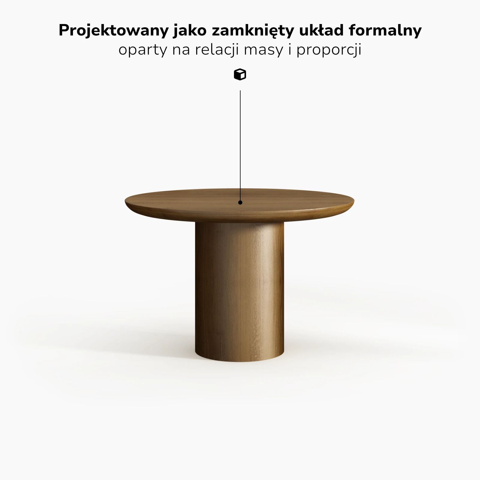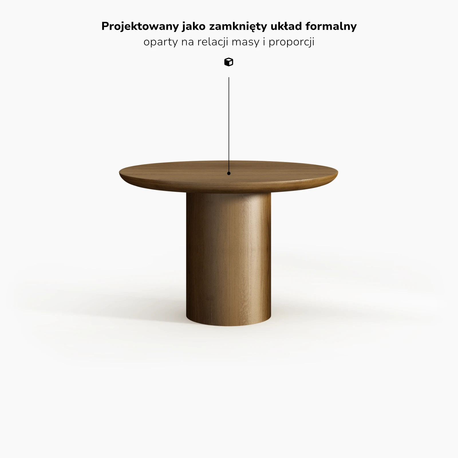 Podstawa została sprowadzona do archetypicznej bryły nośnej, podporządkowanej relacji z blatem, a nie autonomicznej ekspresji.