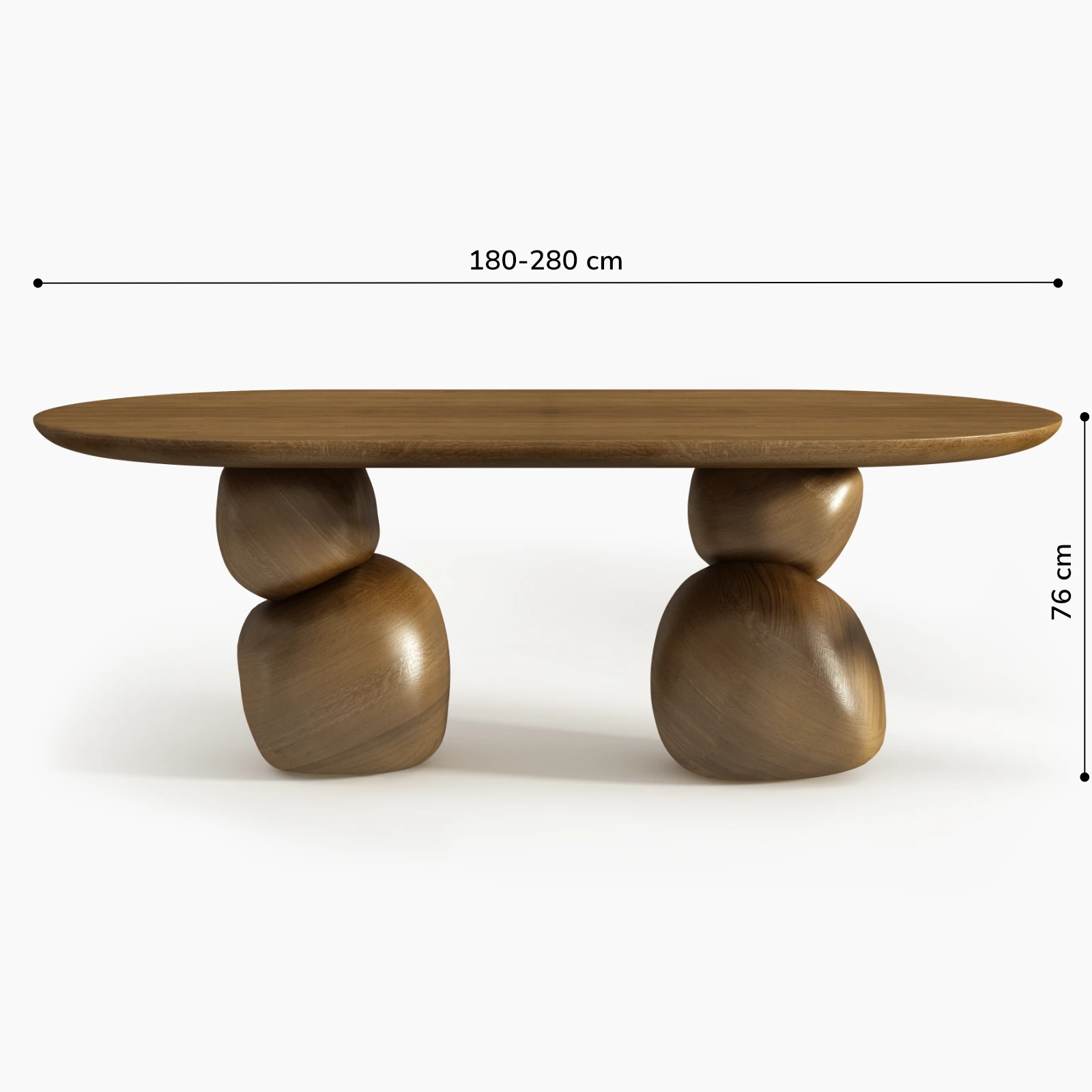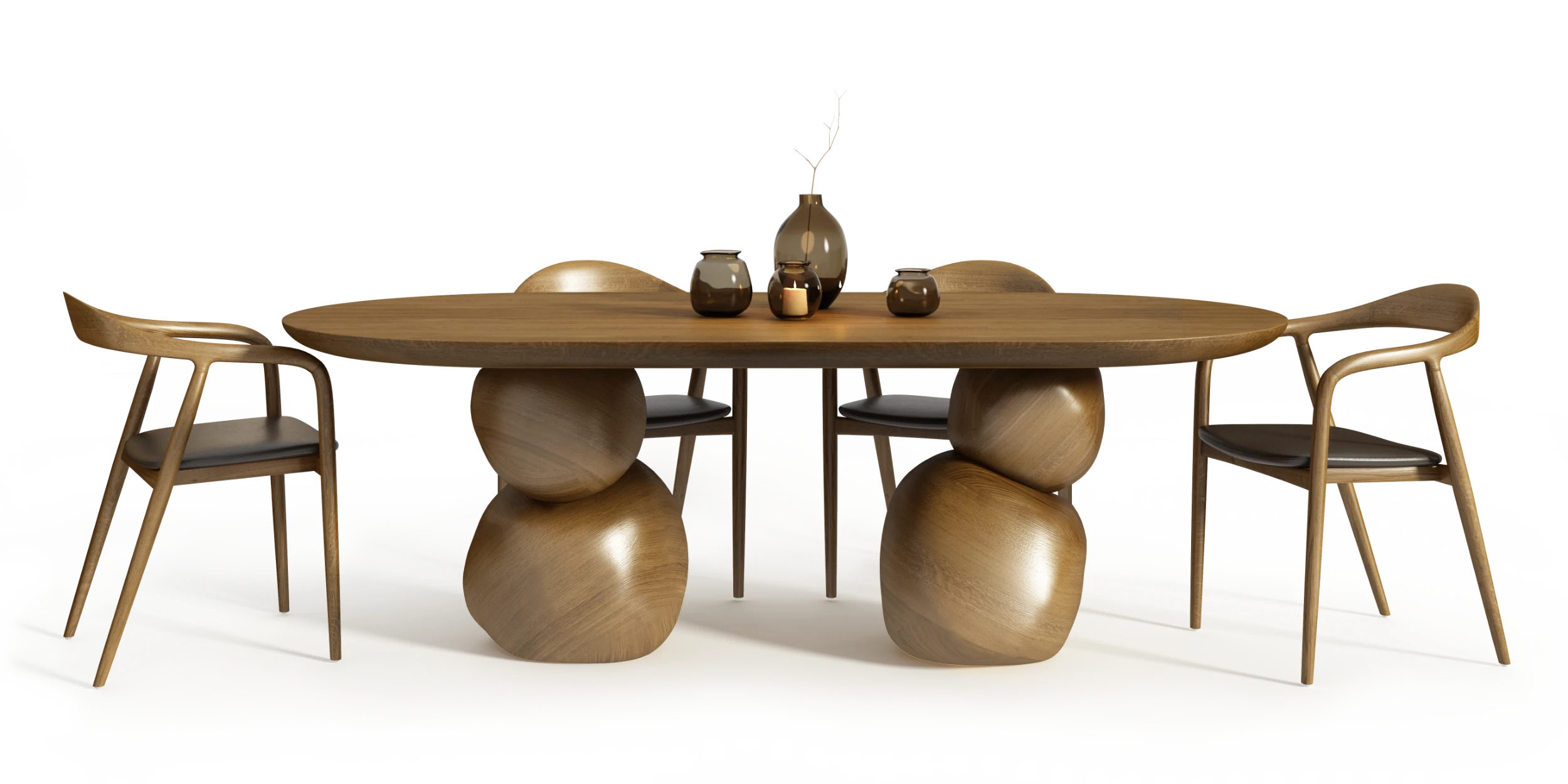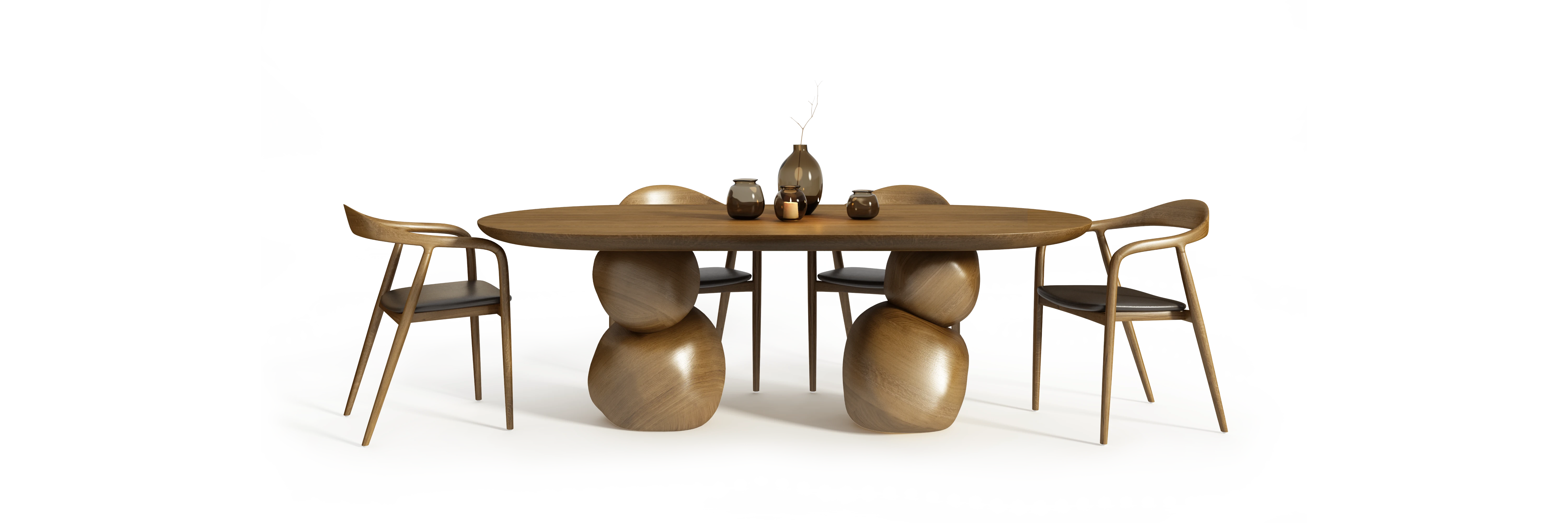 Forma stołów prezentowanych w kolekcji opiera się na zachowaniu równowagi pomiędzy estetyką, funkcją i ergonomią użytkową. Zmiany wymiarów blatu każdorazowo pociągają za sobą korektę proporcji podstawy, tak aby relacje konstrukcyjne pozostawały spójne niezależnie od skali obiektu. Dostosowanie przekrojów i rozstawów elementów nośnych wynika z analizy stabilności oraz komfortu użytkowania, bez ingerencji w zasadniczy charakter formy. Każdy wariant zachowuje czytelność struktury i konsekwencję detalu, przy jednoczesnym utrzymaniu trwałości i precyzji wykonania.