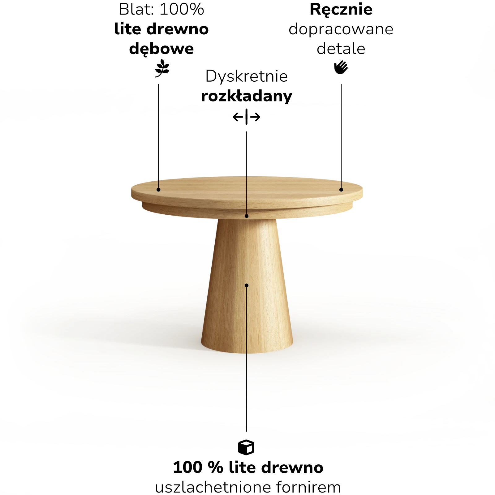 Średnica blatu: 90 | 100 | 110 | 120 | 130 cm