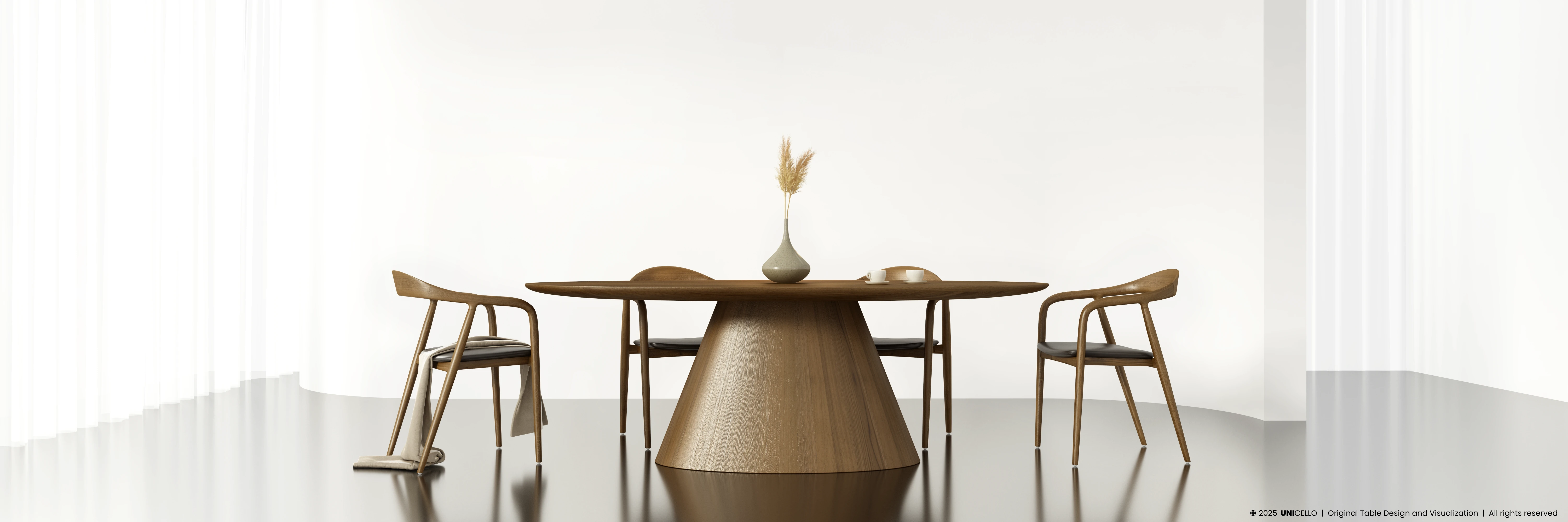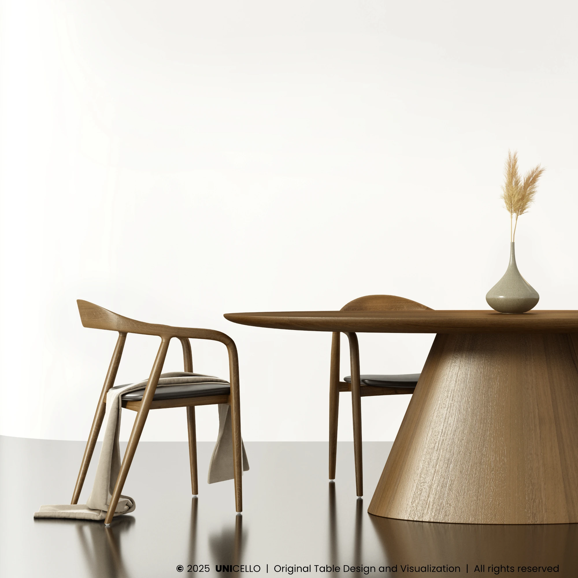 Projekt stołu Elite opiera się na redukcji formy do czytelnych relacji geometrycznych. Punkt ciężkości został przesunięty na proporcję i konstrukcję, bez wprowadzania elementów dekoracyjnych. Forma pozostaje klarowna, a jej wyraz wynika z kontroli skali i napięcia pomiędzy masą a podparciem.