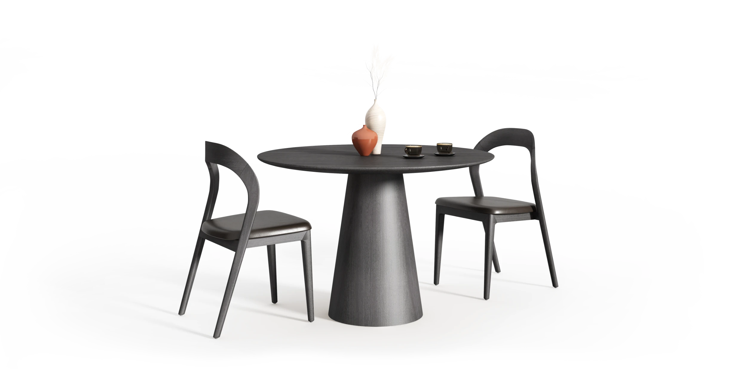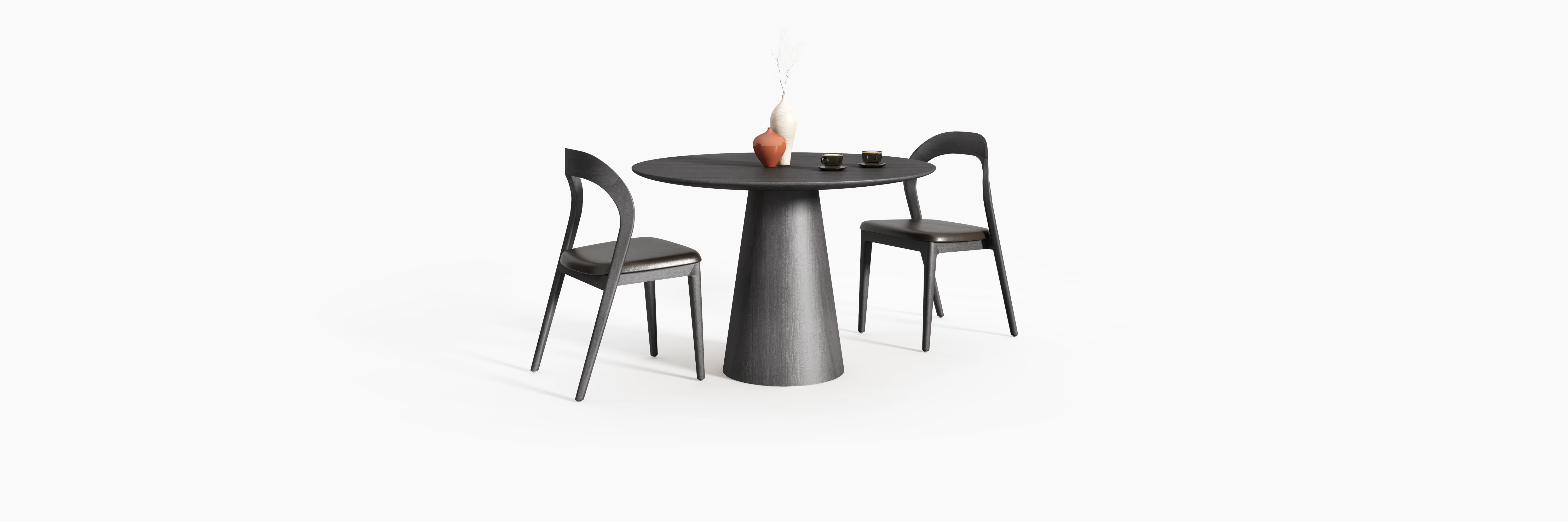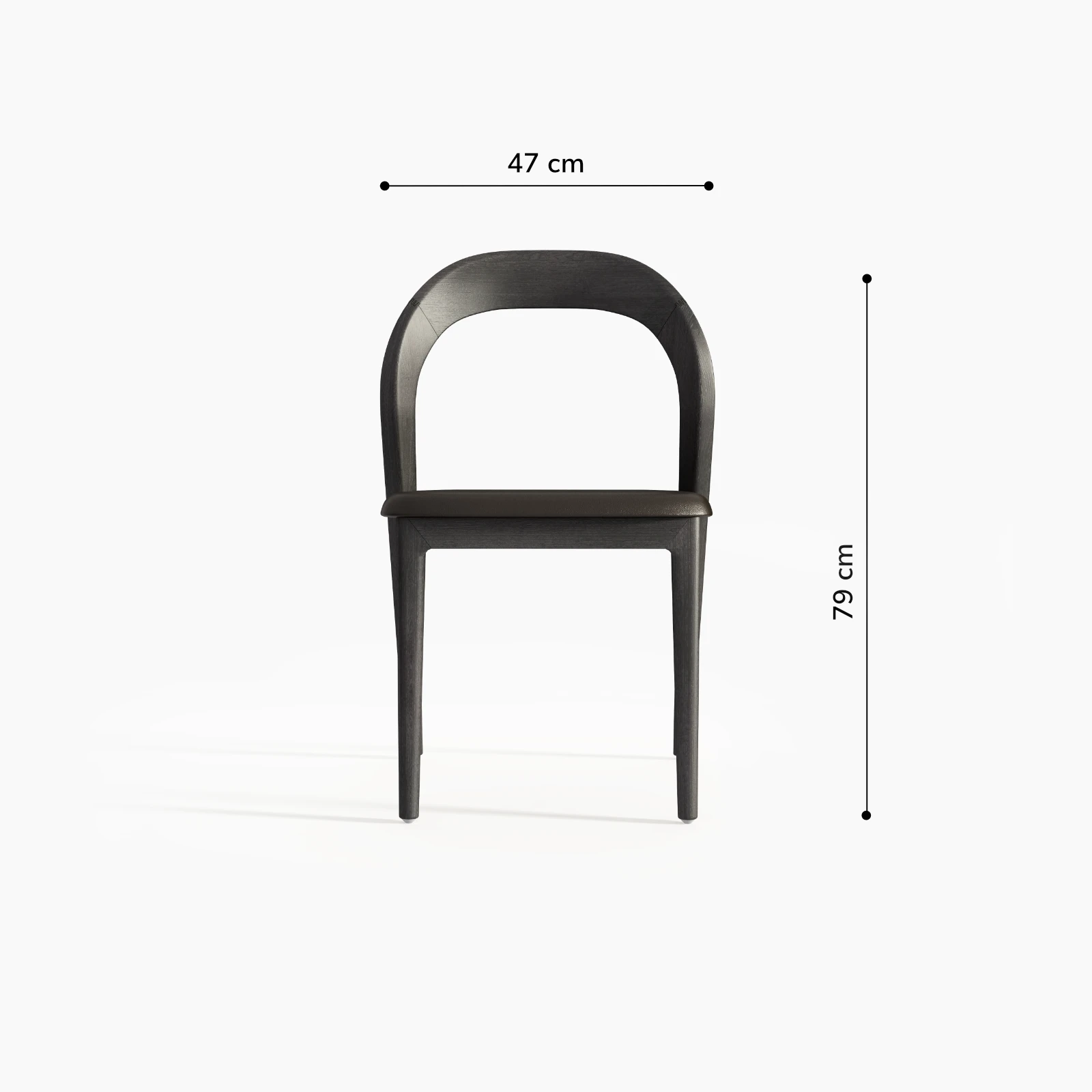 Krzesło Rafaello funkcjonuje w analogicznym porządku formalnym. Zakrzywienie oparcia nie jest wyłącznie rozwiązaniem ergonomicznym, lecz elementem strukturalnym, który wprowadza napięcie pomiędzy łukiem a pionem konstrukcji. Relacja pomiędzy miękką linią drewna a prostą geometrią nóg artykułuje bryłę poprzez kontrast, bez użycia środków dekoracyjnych.
