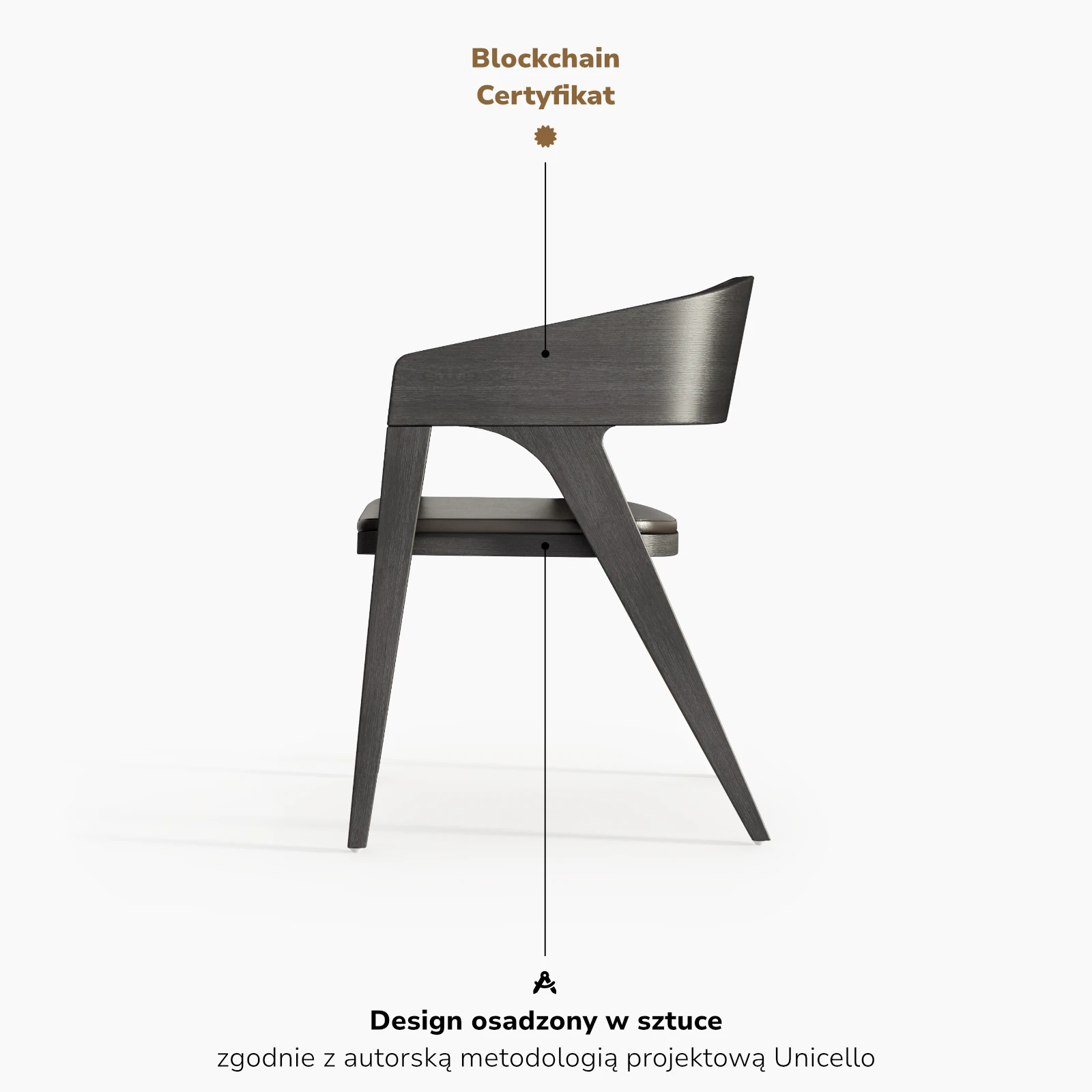 Certyfikat Unicello stanowi zapis autentyczności obiektu użytkowego w publicznym łańcuchu bloków. Każdy egzemplarz otrzymuje przypisany token blockchainowy powiązany z fizycznym meblem. Token funkcjonuje jako reprezentacja Real World Asset, czyli materialnego aktywa utrwalonego w zdecentralizowanym rejestrze cyfrowym.
